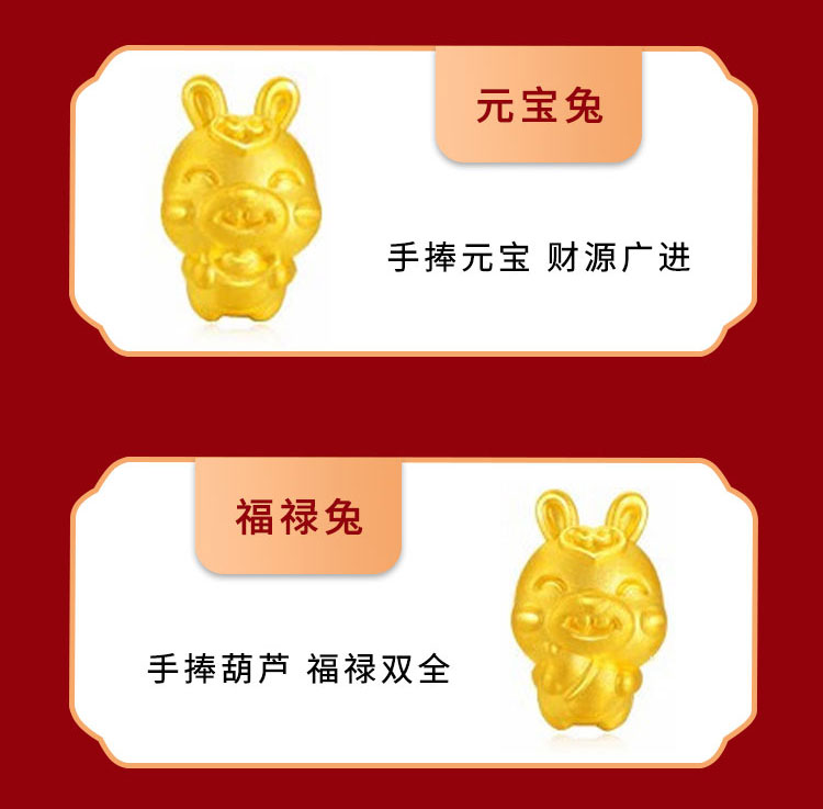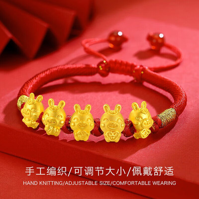 送女友老婆本命年兔年五福兔黄金手链生肖兔男女红绳